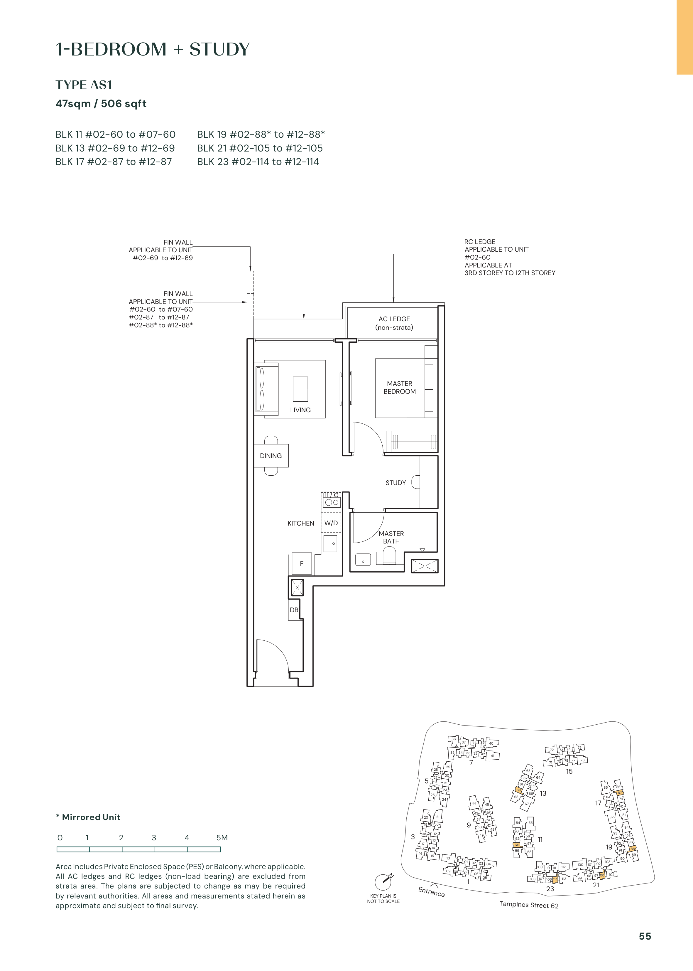| 1 Bedroom + Study | 73 | 463 - 506 | 6.12% |
