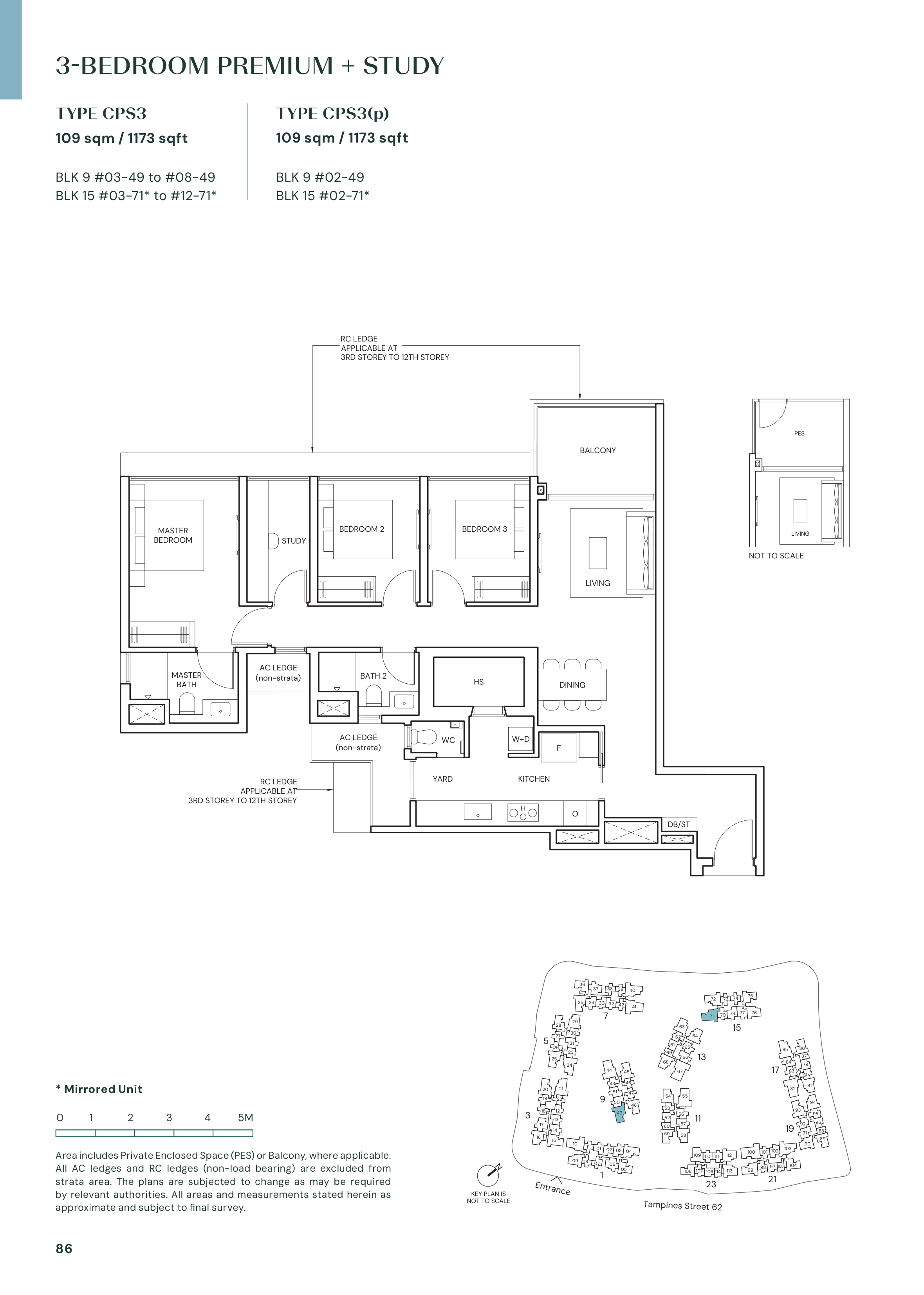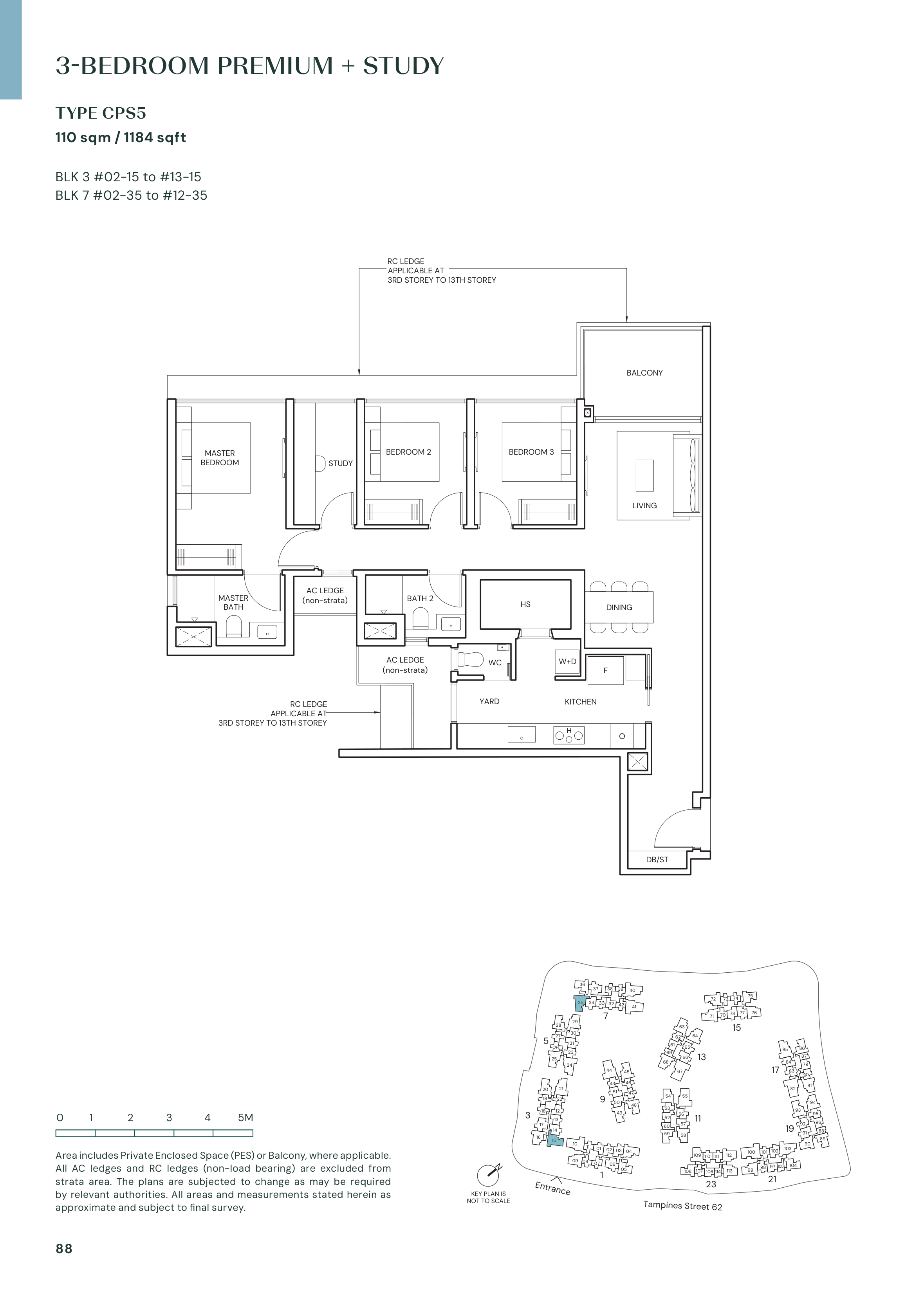 | 3 Bedroom Premium + Study | 115 | 1,163 - 1,184 | 9.64% |